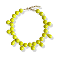 Enhance any look with the unique splendor of the Rainha Necklace in stunning chartreuse. Boasting stunning ceramic beads individually hand-knotted to perfection, the necklace is crafted with vibrant colors that lend a tasteful sophistication to any ensemble. Elevate your style with this elegant statement piece.